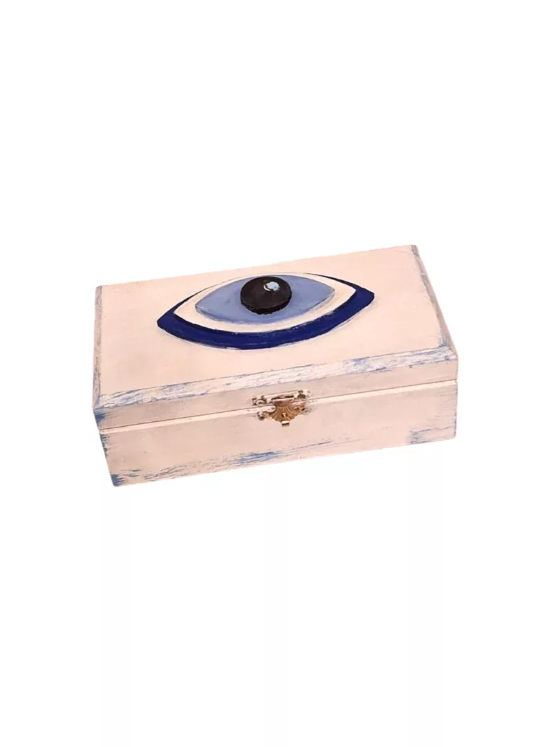 Χειροποίητο Ξύλινο κουτί Evil Eye λευκό